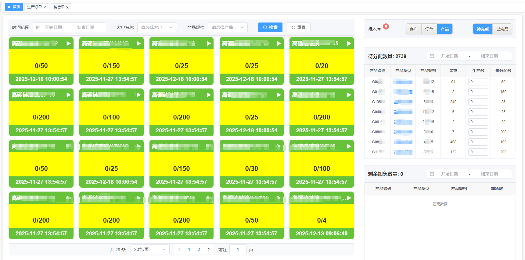 工厂生产看板致力于解决中小型工厂生产订单、实时库存管理,卡片式订单模式,直观展示各订单产品信息,界面美观,具有简单实用、快速上手的特点